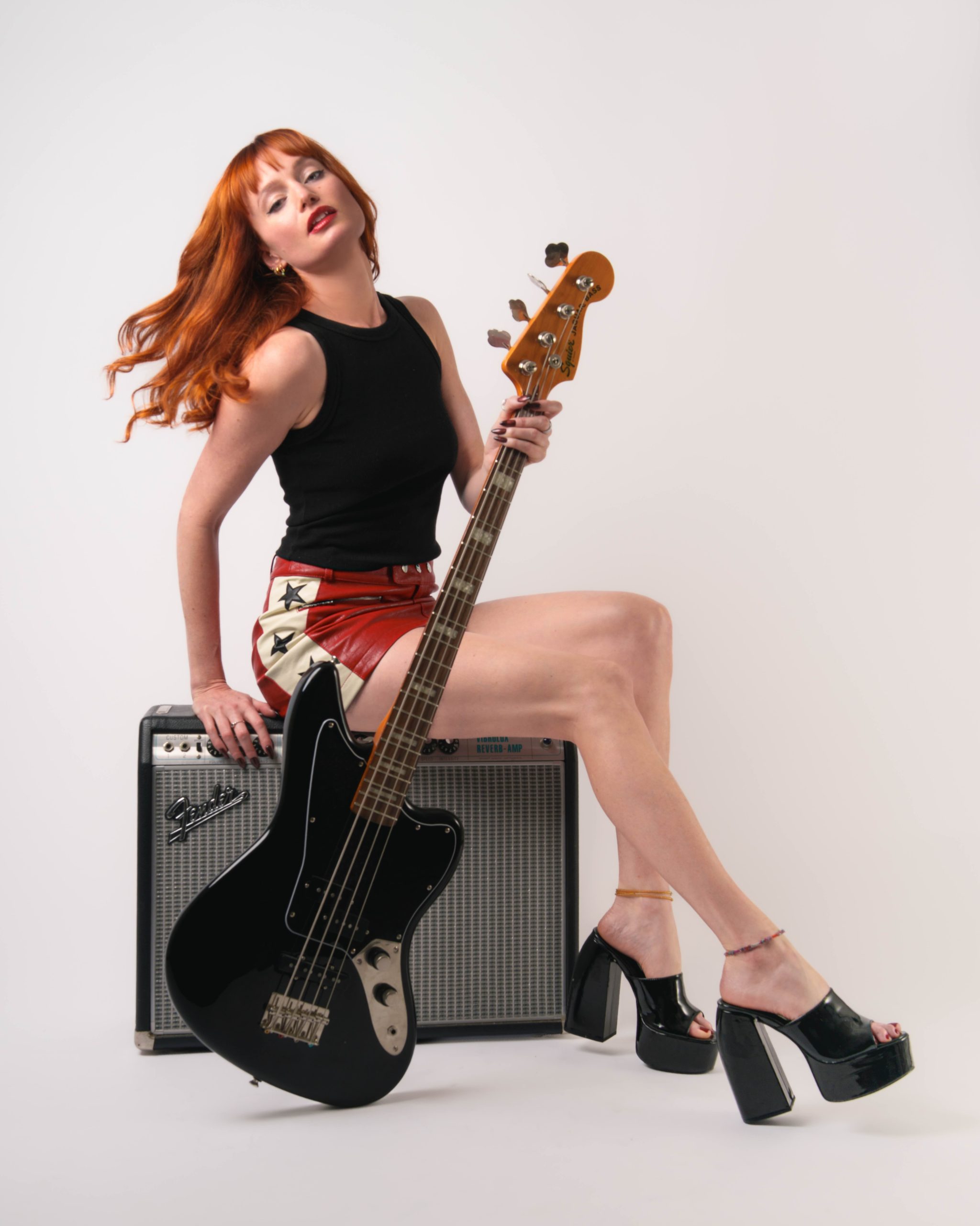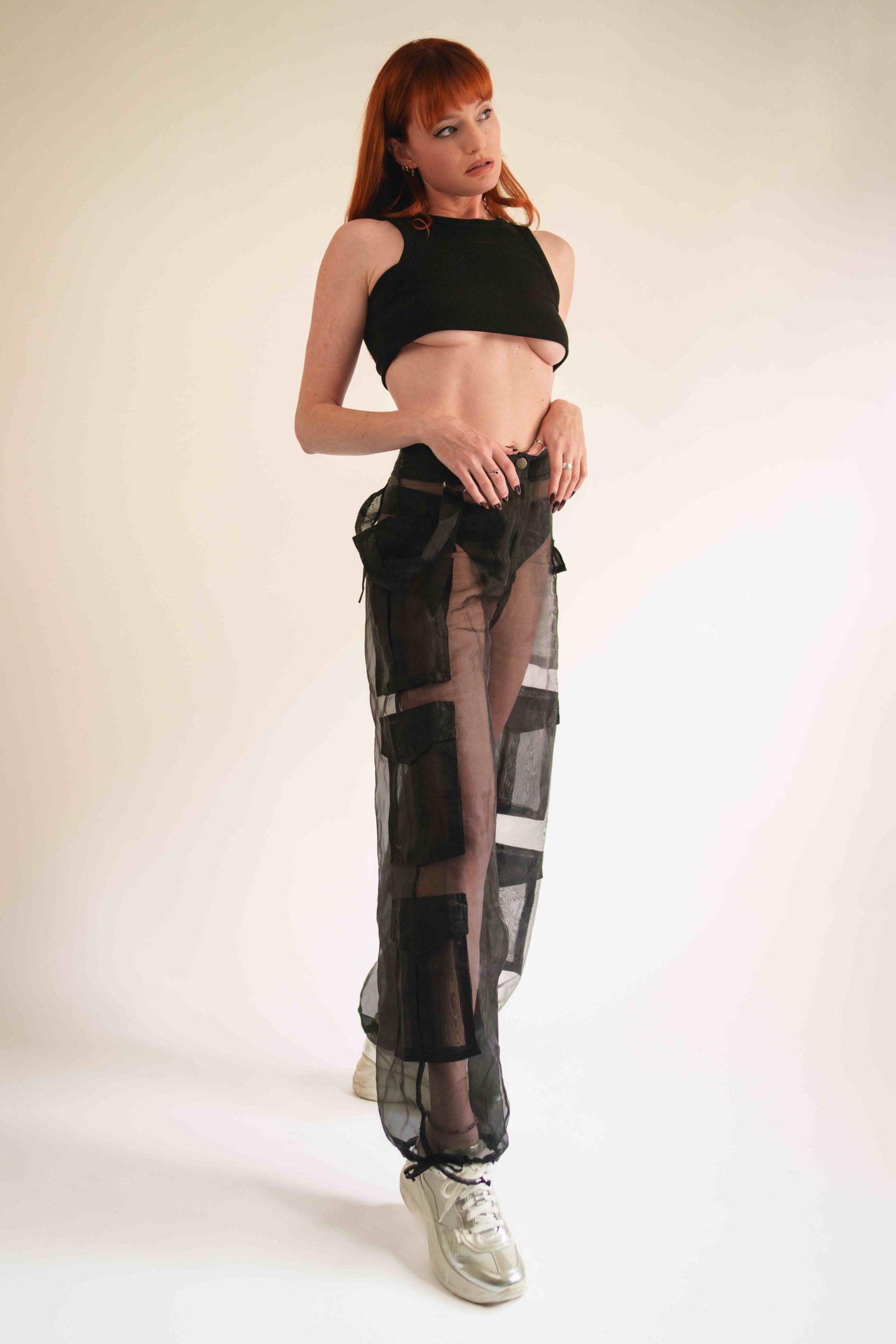 • Height 5’6″, Weight 110#s, Bust 32″, Bra: 32B, Waist 26″, Hips 34″, Dress: 0, Pant/Jean 26, Shoe 6.5, Eyes: Blue-Green, Hair: Red