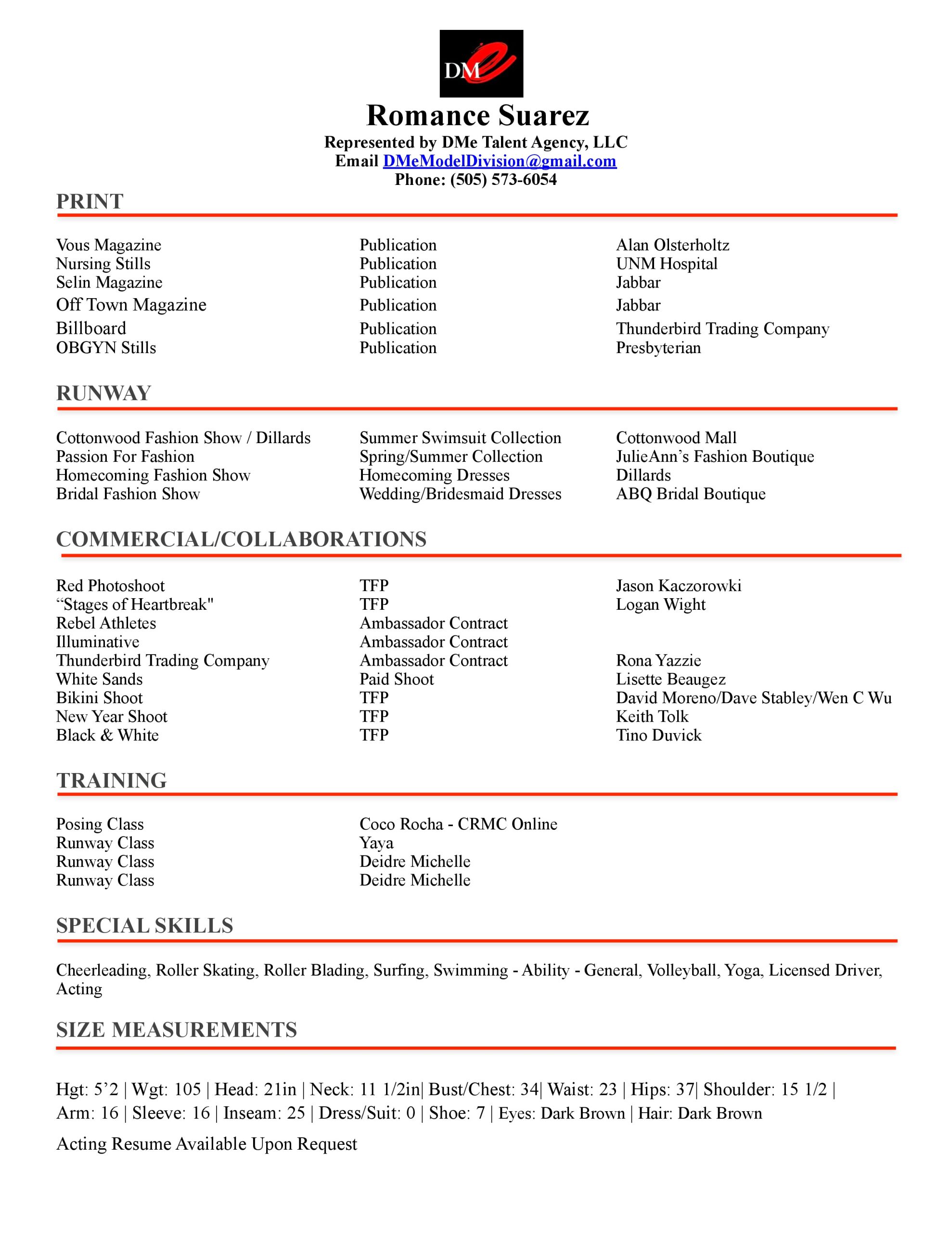 - Skills: Cheerleading, Roller Skating, Roller Blading, Surfing, Swimming – Ability – General, Volleyball, Yoga, Licensed Driver, Acting